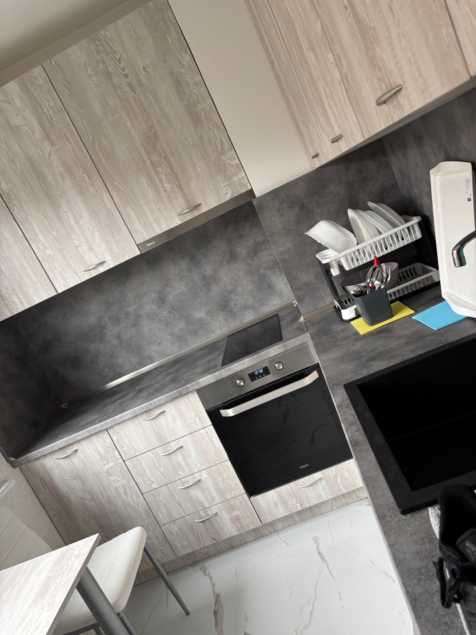 Двустаен след тотал ремонт , на булеварда . Хол , кухня , спалня и баня. Южен с тераса . Обзаведен . Слънчев