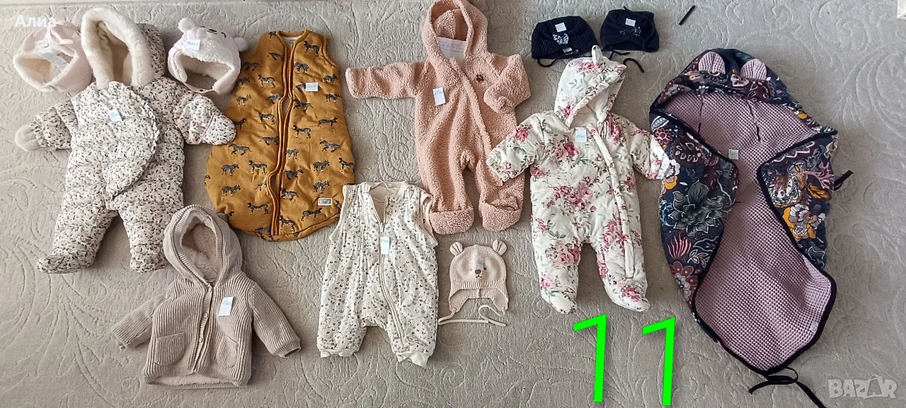 Предлагам 9 комбинации, подбрани предимно по марки, ще изпратя снимки при интерес. Предлагам и зимни гащеризони, спален чувал, шапки и др.- /трета снимка/- 11