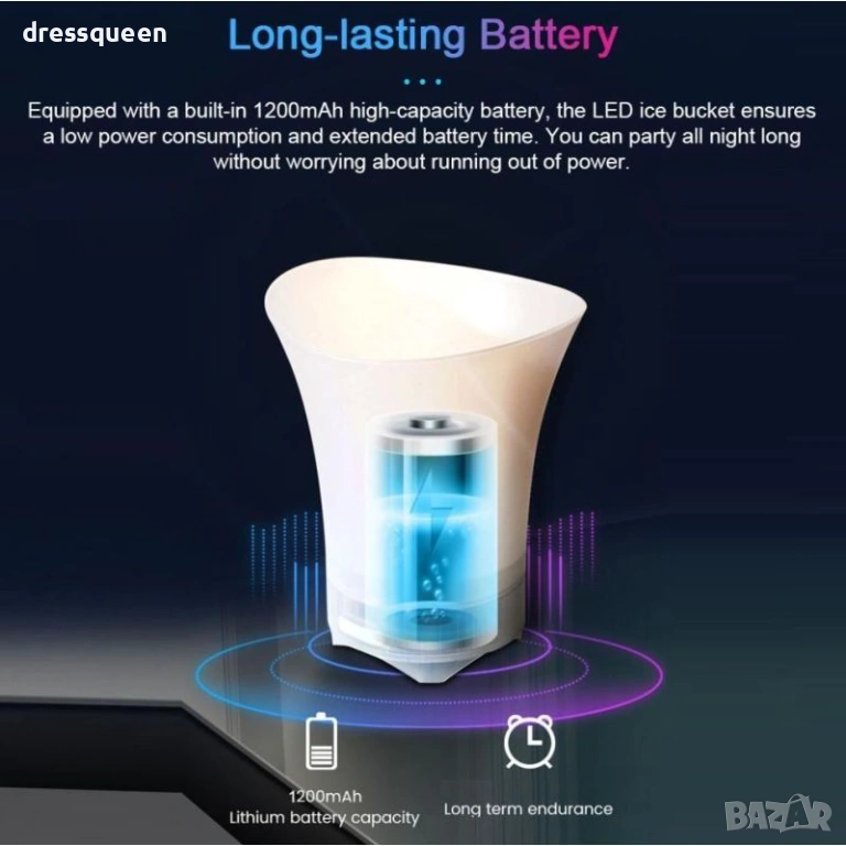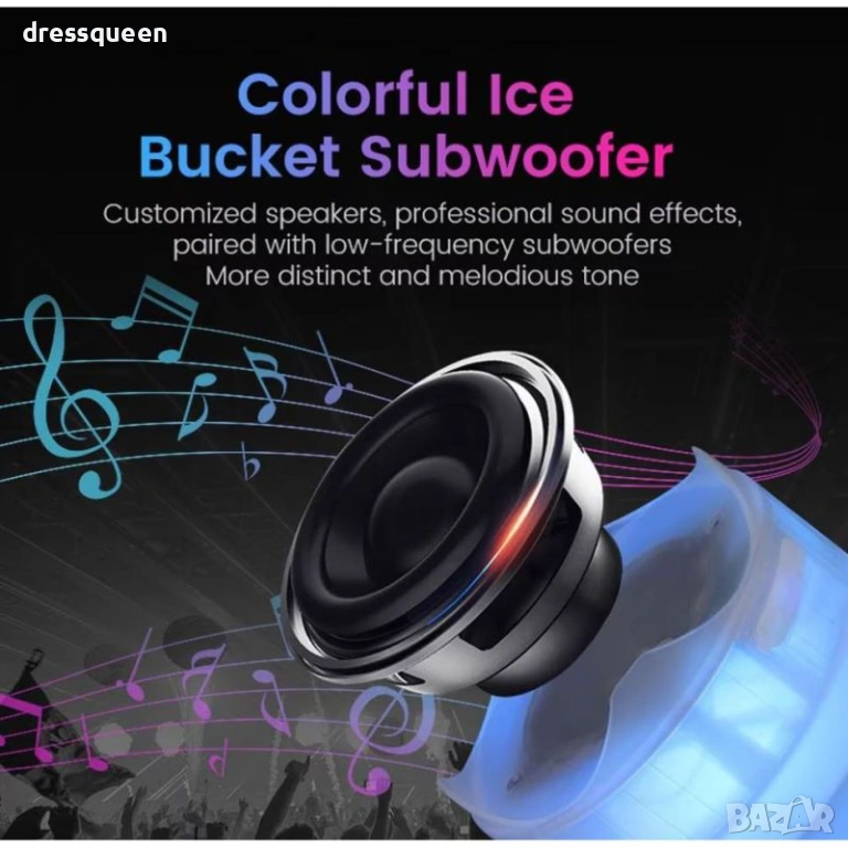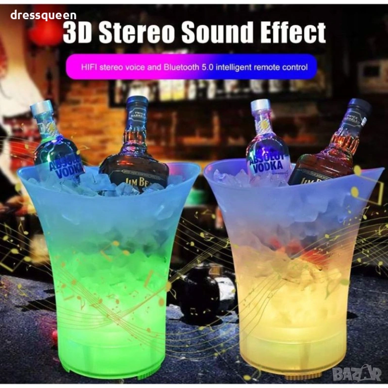 Представяме Ви мултифункционалния охладител за вино и шампанско, който съчетава стил и технология в едно. Тази светеща кофа за лед разполага с голям капацитет от 7 литра, което я прави перфектна за охлаждане на множество напитки едновременно. Технологията Bluetooth 5.0 гарантира бързо и лесно сдвояване, а вградената батерия от 1200mAh позволява на партито да продължи до 4 часа без нужда от захранване. RGB LED модулът превръща ледарката във впечатляващ светещ акцент с 10 светлинни режима.
