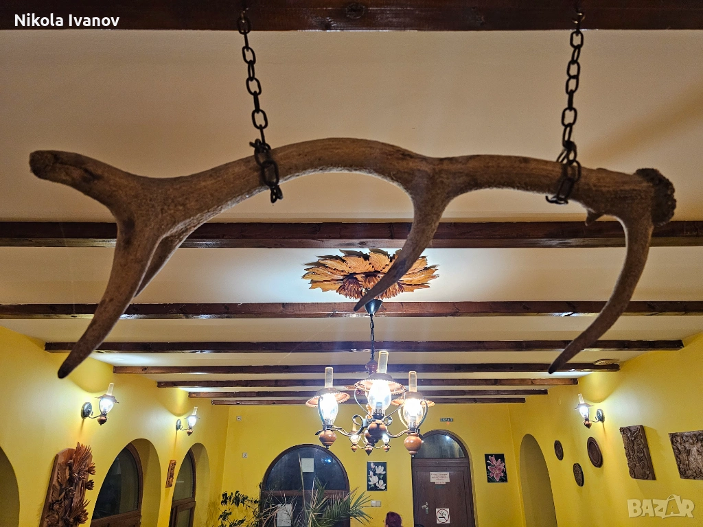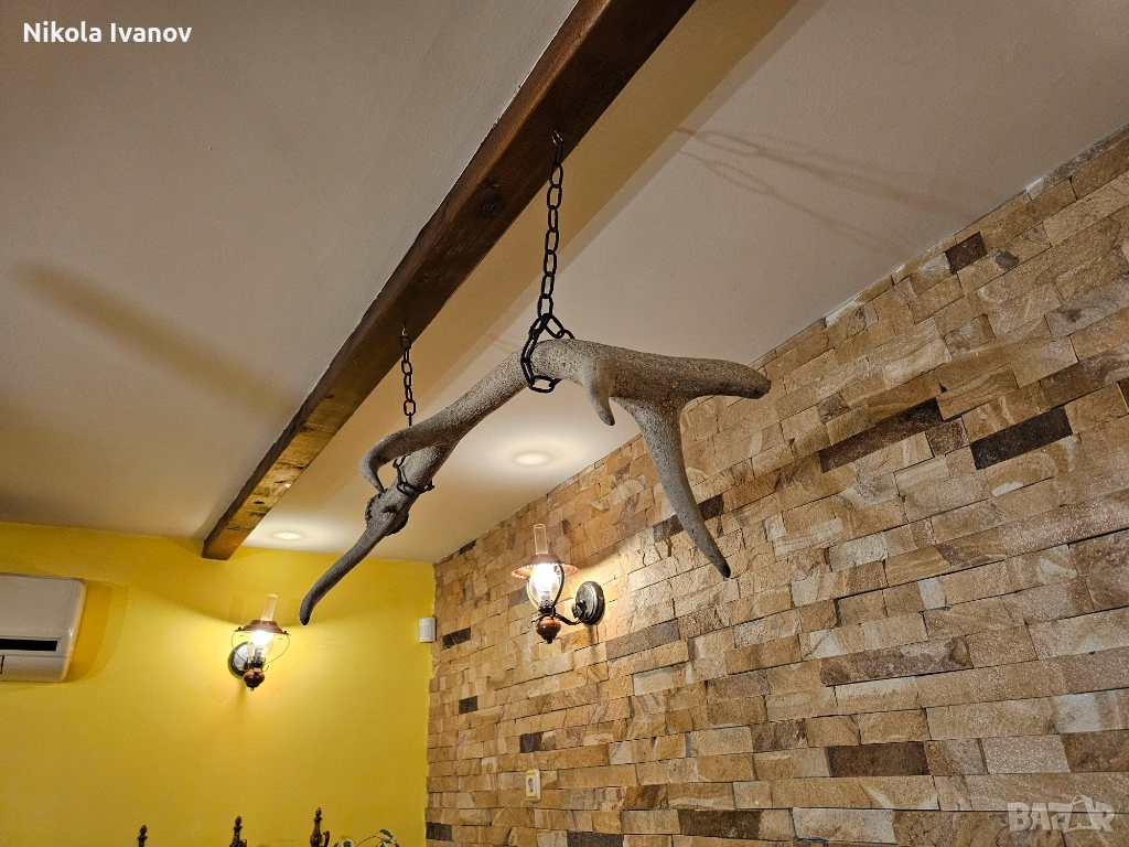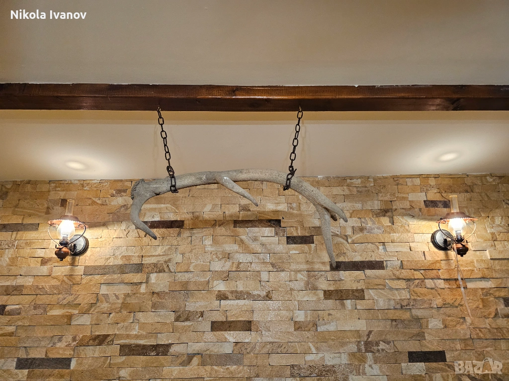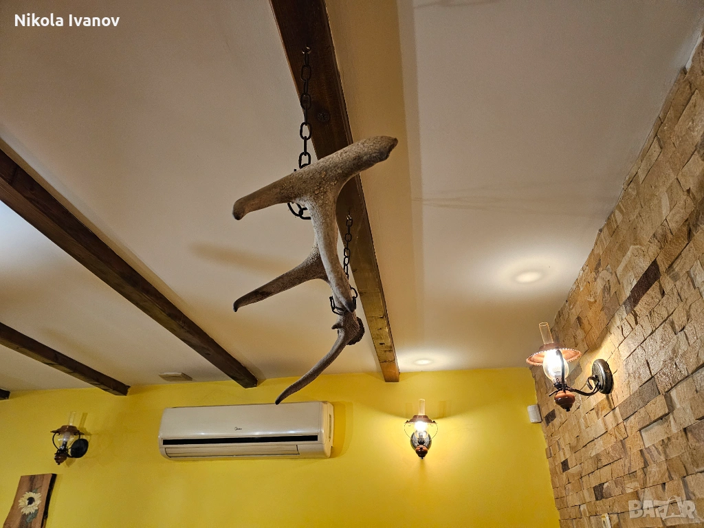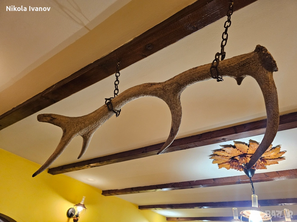 В момента е подготвен за окачване (както се вижда на снимките), което го прави готов за директна декорация в механи, вили, ловни домове или ресторанти с битов стил. Изключително подходящ е и за изработка на уникален полилей или друг тип интериорен акцент.