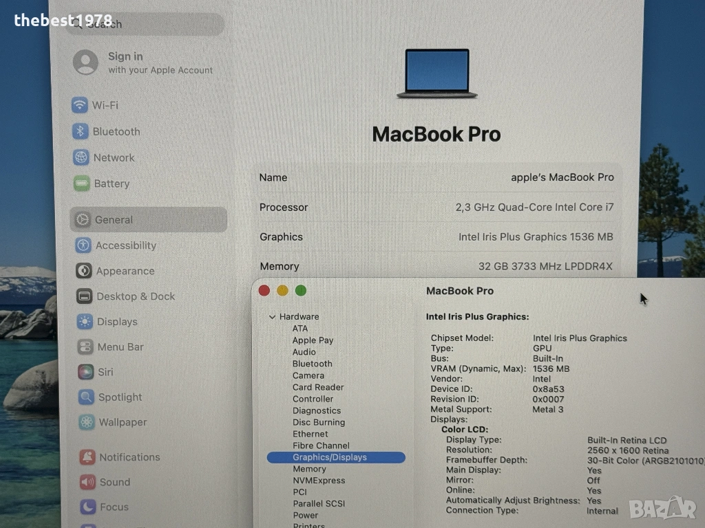 Apple MacBook Pro "Core i7" 2.3 13" 2020 4 TB 3...Лаптопа не е ползван,взет е за резервен.Без никакви следи от употреба по корпус,клавиатура,или екран,а батерията е на 8 цикъла.