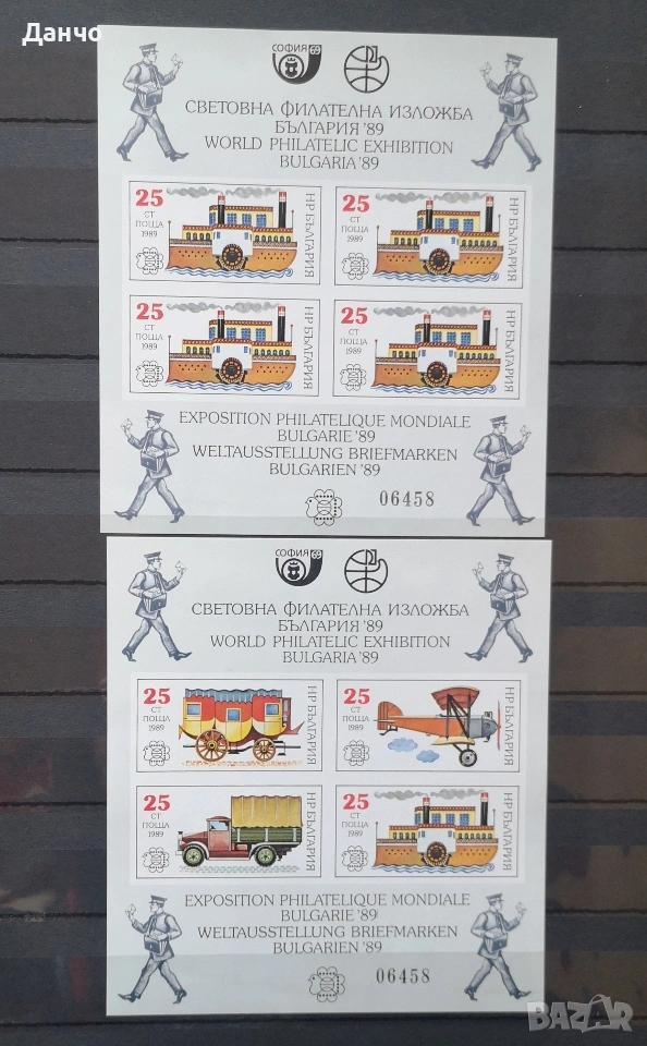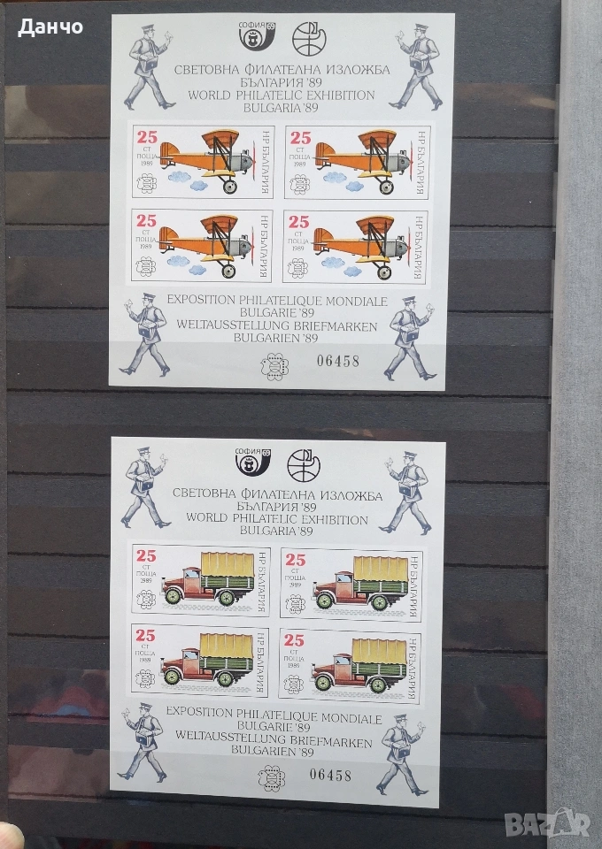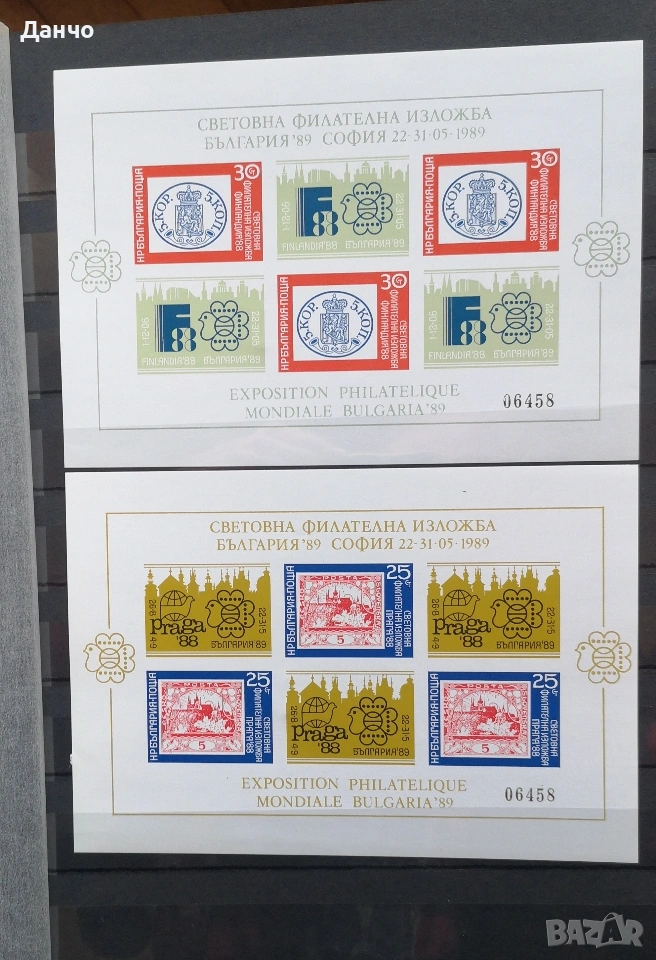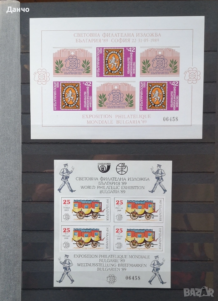 Световна филателна изложба България 1989 г., 10 листа номерирани.