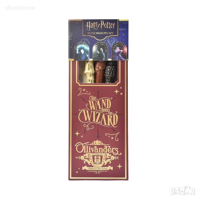 Комплект Harry Potter Triple Wand Pack събира в една кутия 3 химикала във формата на най-известните магически пръчки – на Хари Потър, Албус Дъмбълдор и Лорд Волдемор.