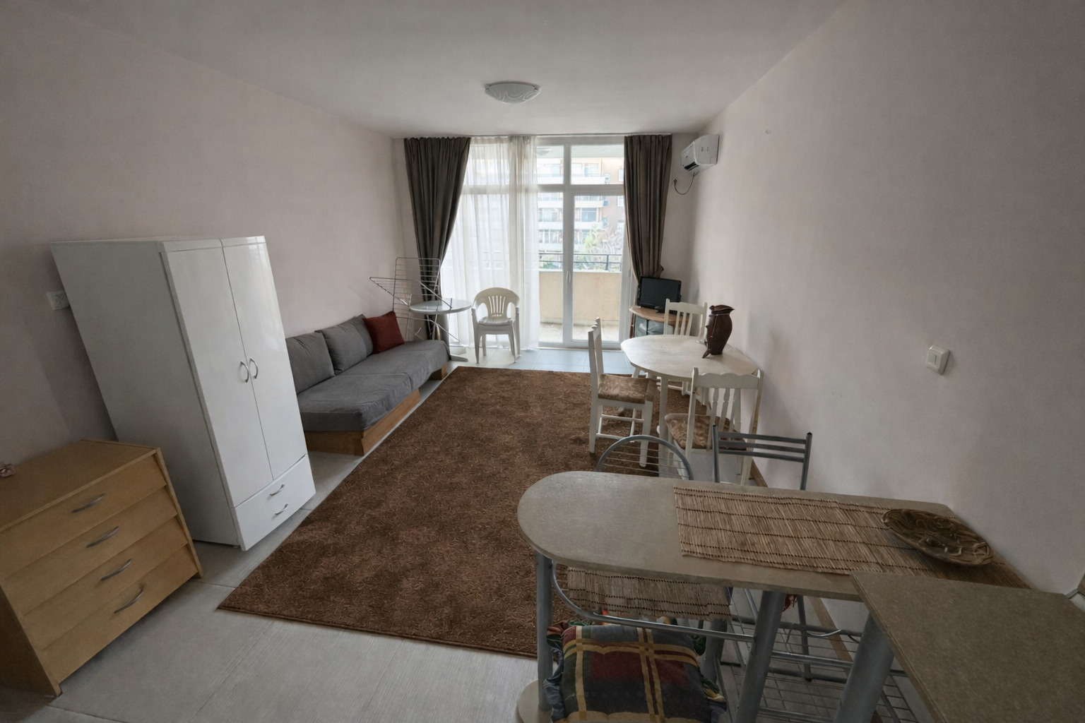 Продава се просторен и светъл двустаен апартамент с южно изложение, разположен на 3-ти етаж в красив затворен комплекс в Слънчев бряг, подходящ за целогодишно живеене. Комплексът се отличава с добре поддържана територия, модерно благоустрояване и приятна атмосфера за живот и почивка. На територията на комплекса има голям басейн за възрастни и деца, обособени зони за отдих, зона за барбекю, спортни площадки, тенис корт и модерен фитнес салон. Комплексът е с ниска такса поддръжка само 450 евро на година, което прави поддръжката на имота изключително изгодна. Отличната локация осигурява лесен достъп до цялата необходима инфраструктура: в непосредствена близост се намира популярният супермаркет Младост , както и магазини, кафенета, ресторанти, аптеки, спирки на градски транспорт и други удобства. До широкия пясъчен плаж има около 600 метра, което позволява лесен и бърз достъп до морето пеша. Апартаментът се продава напълно обзаведен и оборудван с всички необходими мебели и електроуреди и е готов за незабавно нанасяне или отдаване под наем без допълнителни инвестиции. Просторните и светли помещения, южното изложение и функционалното разпределение създават комфортна жилищна среда с много естествена светлина през целия ден. Сградата е въведена в експлоатация и разполага с Акт 16, като са налични индивидуални битови партиди за ток и вода. Отлична възможност за собствено жилище край морето, за почивка или като изгодна инвестиция в недвижим имот по българското Черноморие.