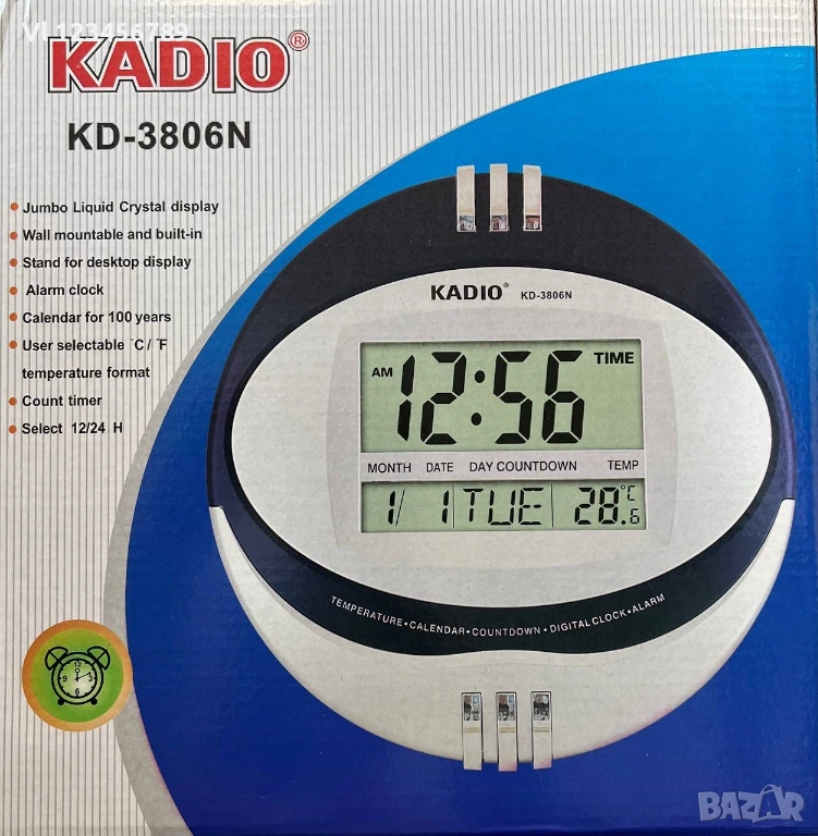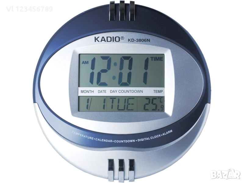 Електронният часовник Kadio KD-3806N е оборудван с будилник, като можете да изберете една от петте мелодии. Часовникът може да бъде настроен в два формата: 12 или 24 часа.