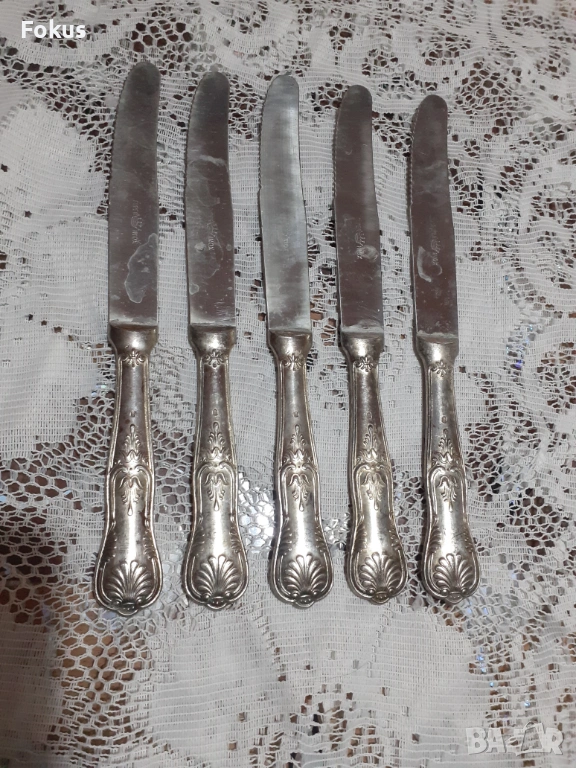 Стари антикварни посребрени прибори ножове 5 бр. маркирани → Обява 53712195