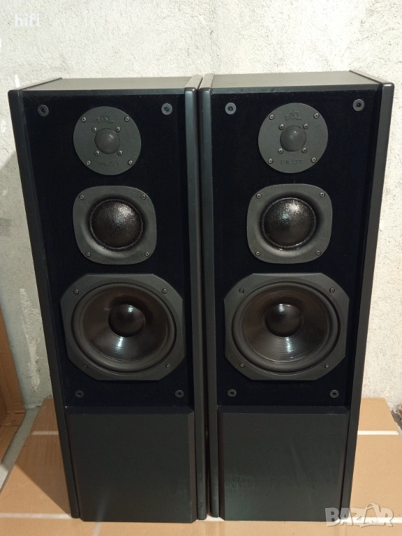 Трилентови тонколони Pilot ST303. В много добро състояние , технически отлични. Габаритни размери: ш.28см, в.84см, д.25см. Конструкция със заден басрефлекс с 8" нискочестотен говорител Westra , средночестотен и високочестотен Seas. Номинална мощност 100w, импеданс 8ohm, честотна лента 26Hz-30kHz. Произведени в Германия.