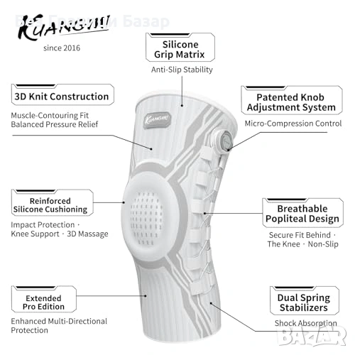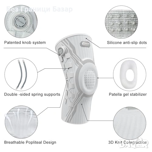 Нова Наколенка с компресия за артрит/ACL/менискус, антислип, лява/дясна
