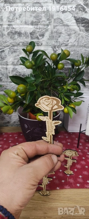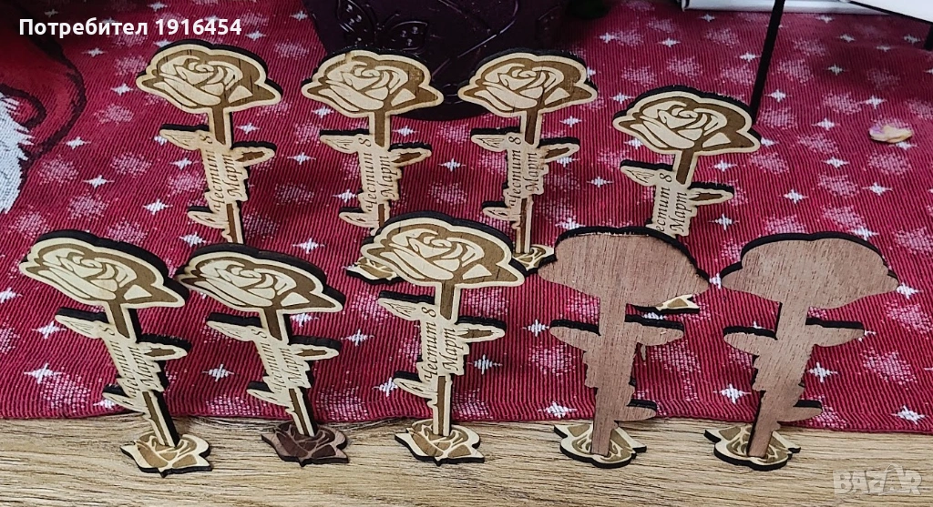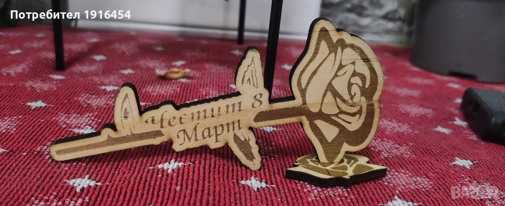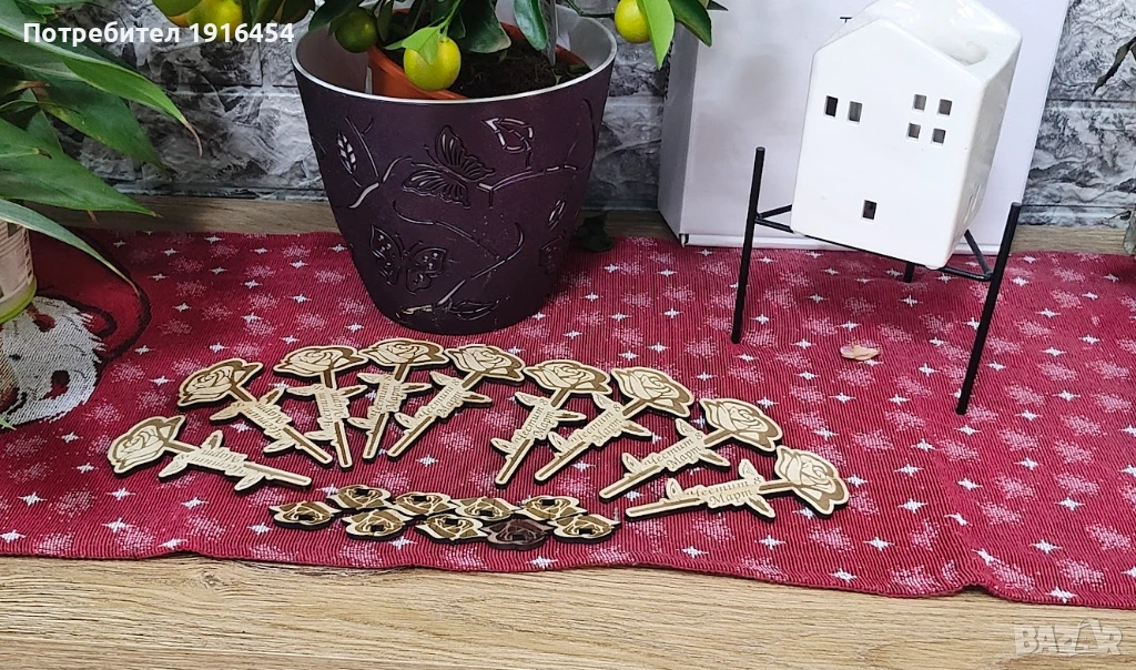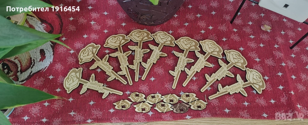 Комплектът включва рози с текст „Честит 8 март“ 🌹 както и подложки, за да стоят изправени и да напомнят, че Вие сте човекът, направил този жест! 😊