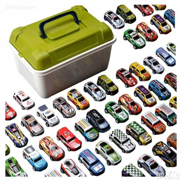 Комплектът включва разнообразни модели, от бързи състезателни коли до здрави офроуд превозни средства. За да поддържате колекцията подредена и лесна за пренасяне, всички 50 колички пристигат в голяма прозрачна кутия контейнер с удобна дръжка.