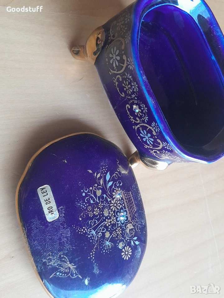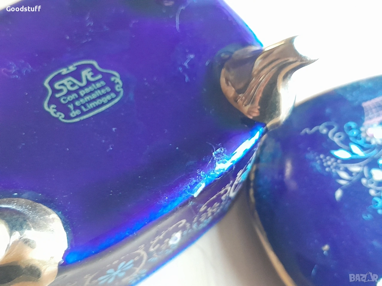 Оригинален стар френски кралско син порцелан с флорални мотиви.