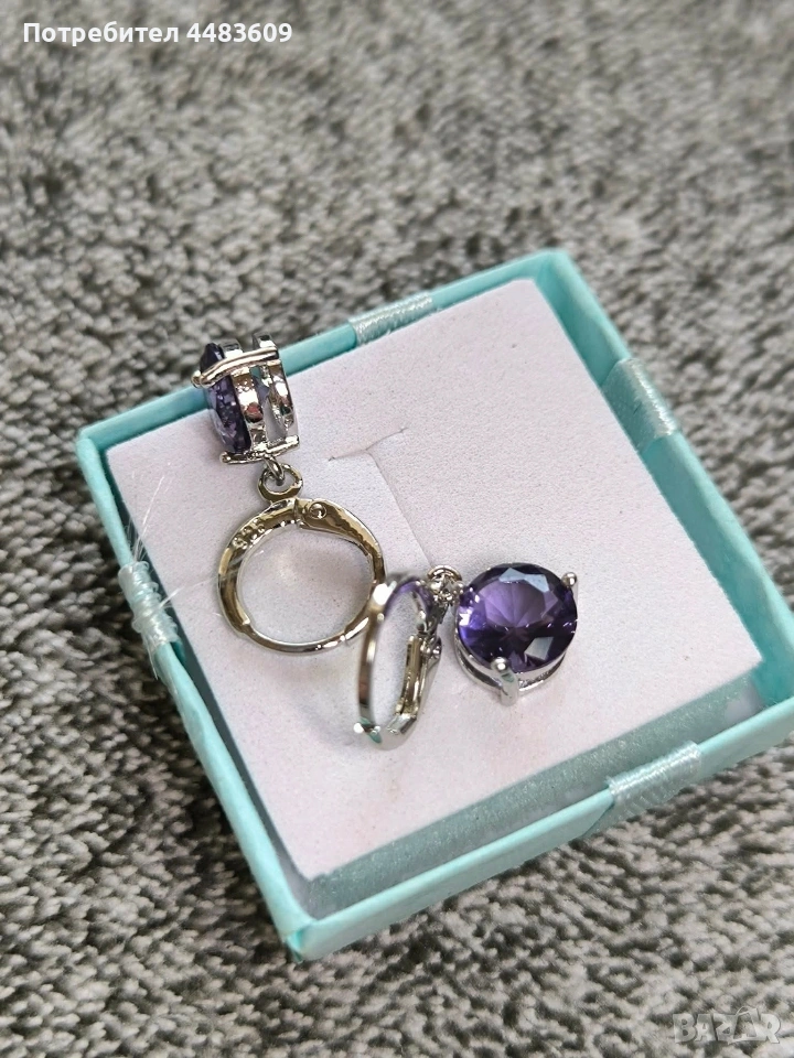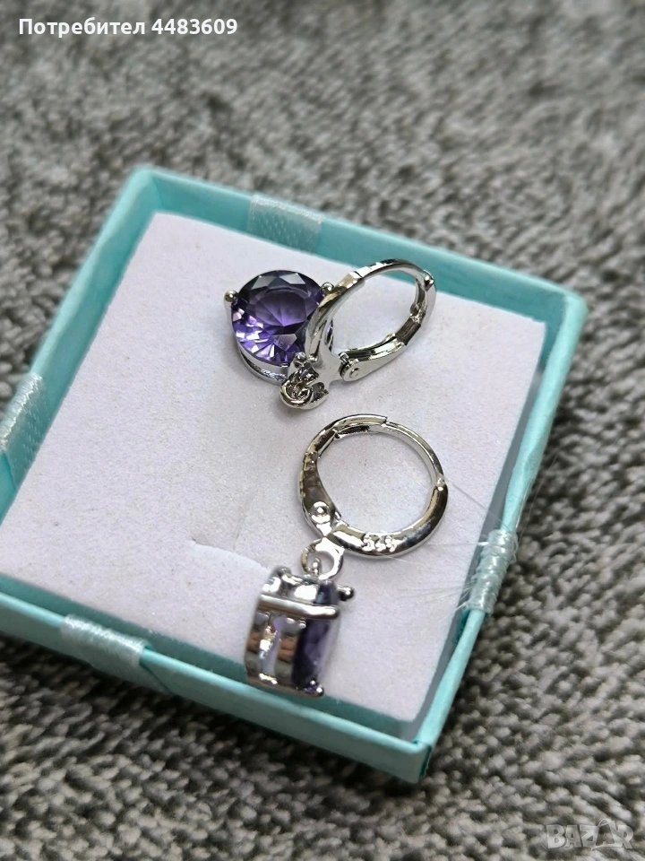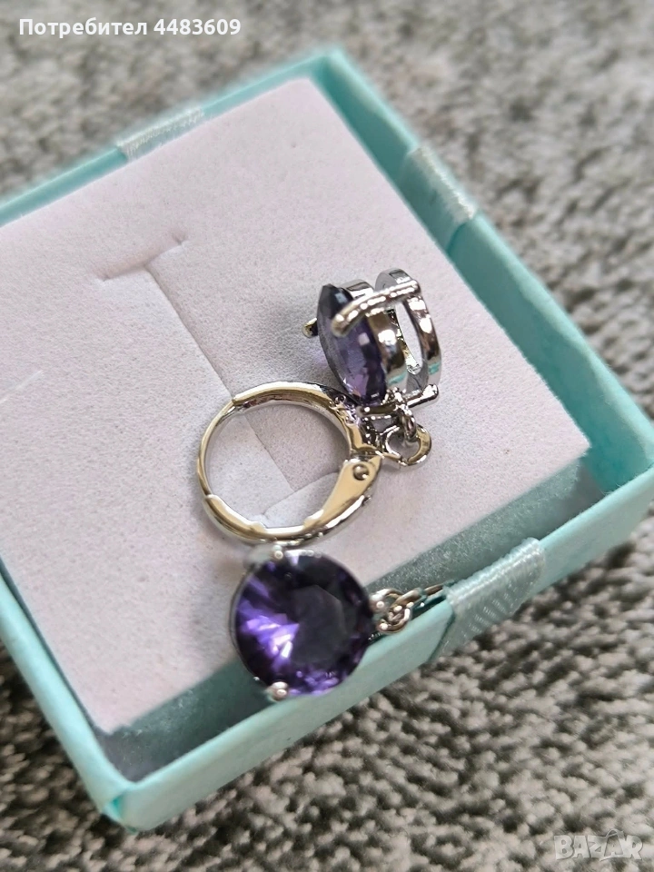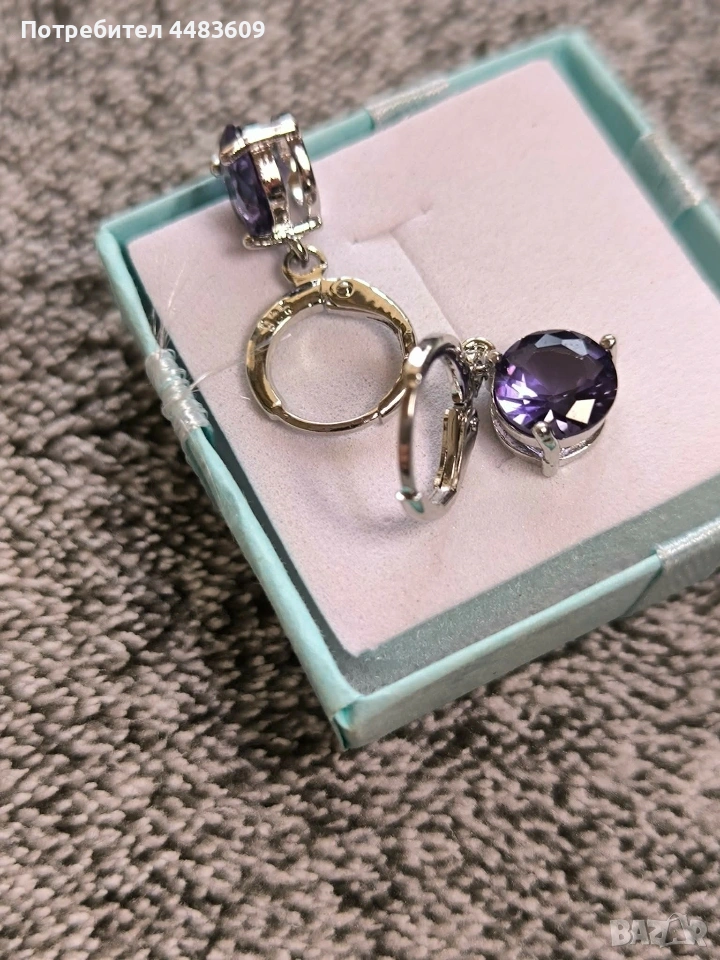 Сребърни обеци с лилав цирконии → Обява 53713029