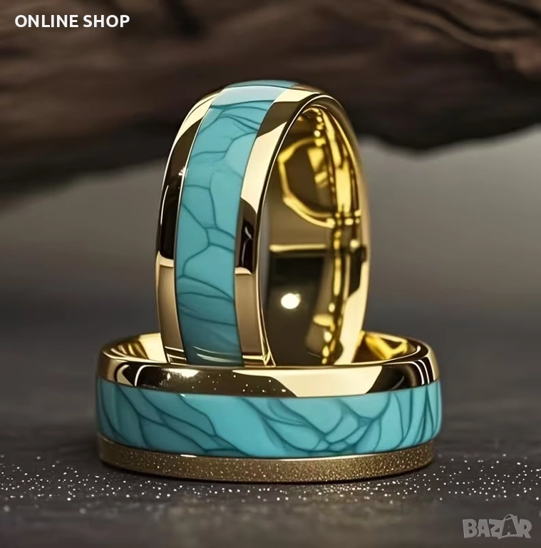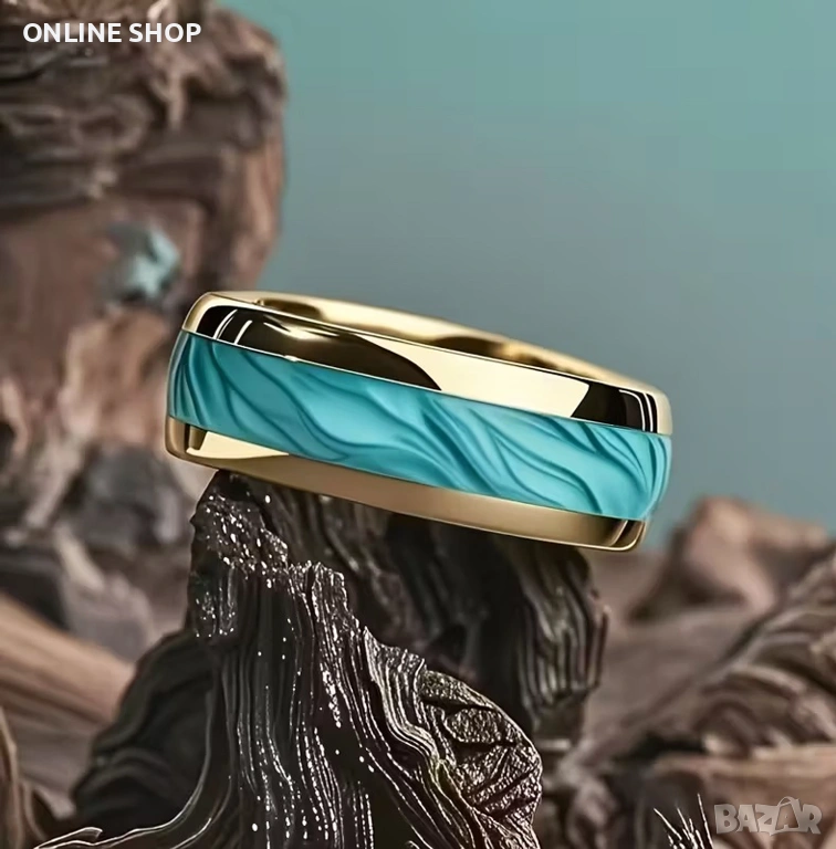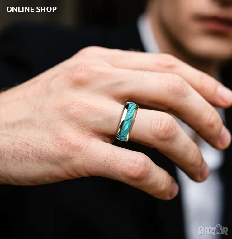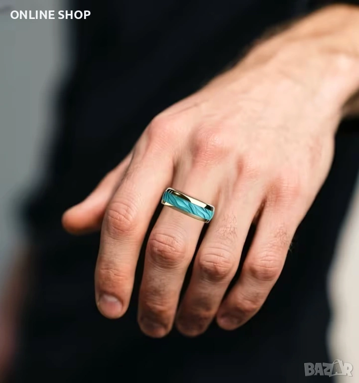 Дизайн: Мъжки моден златен пръстен с морски ивици 8 мм, елегантен бижутериен аксесоар за сватби, подходящ за ежедневно носене или специални поводи!