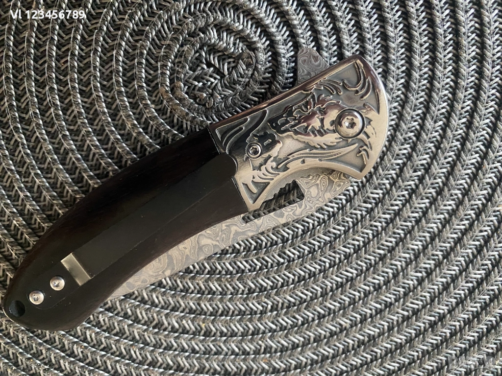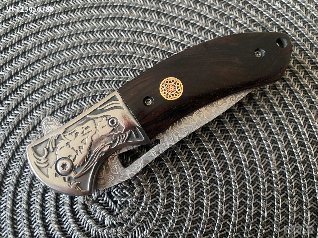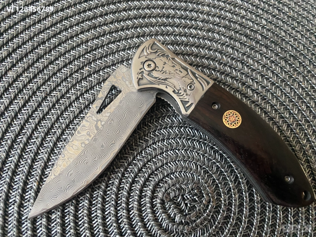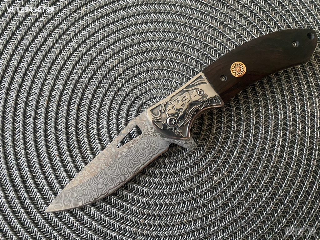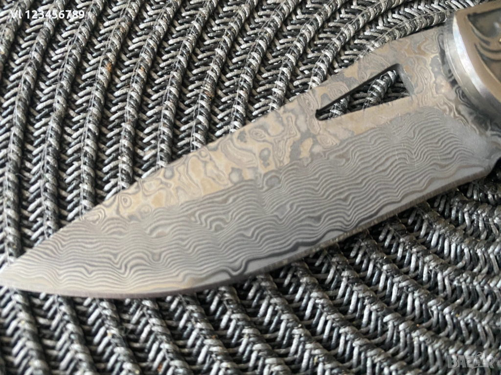 Дължина на острието: 9.00см,рисунка тип дамаска стомана, прорязан