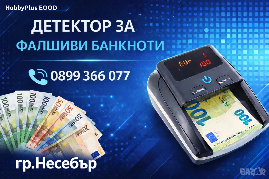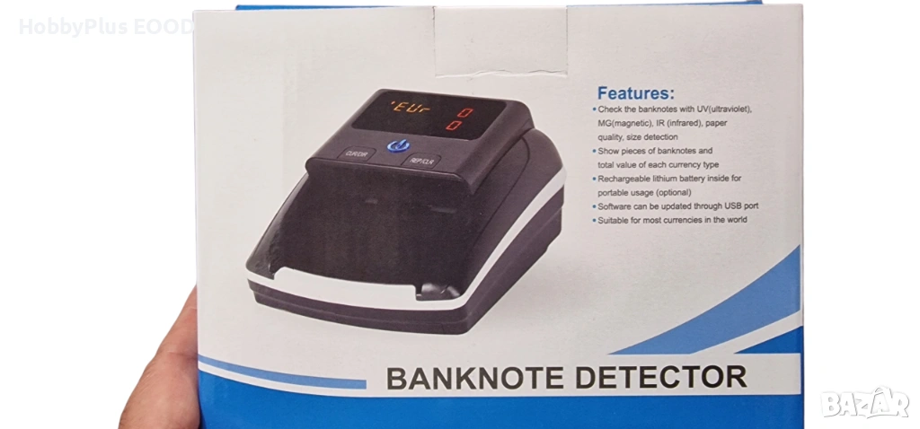 Детектора е програмиран да работи с EUR(евро) и с USD(долари),