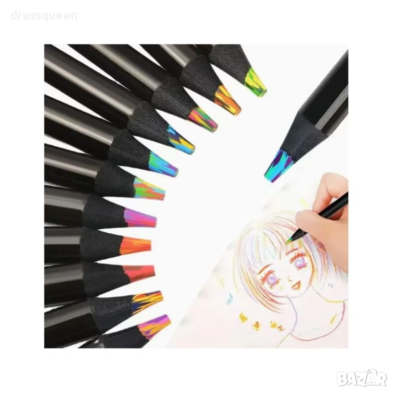 Този комплект дъгови моливи е задължителен за всеки, който търси специални моливи с многоцветен графит. 12-те молива са с пресовано ядро, което съчетава няколко цвята и позволява динамично оцветяване само с един инструмент. Този уникален дъгов ефект е идеален за добавяне на акценти, заглавия или специални визуални ефекти във вашите скици и рисунки. Многоцветните моливи се доставят в компактна кутия и са чудесен подарък за всеки творец.
