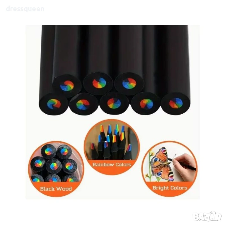 12 бр. Дъгови молива с многоцветна сърцевина.