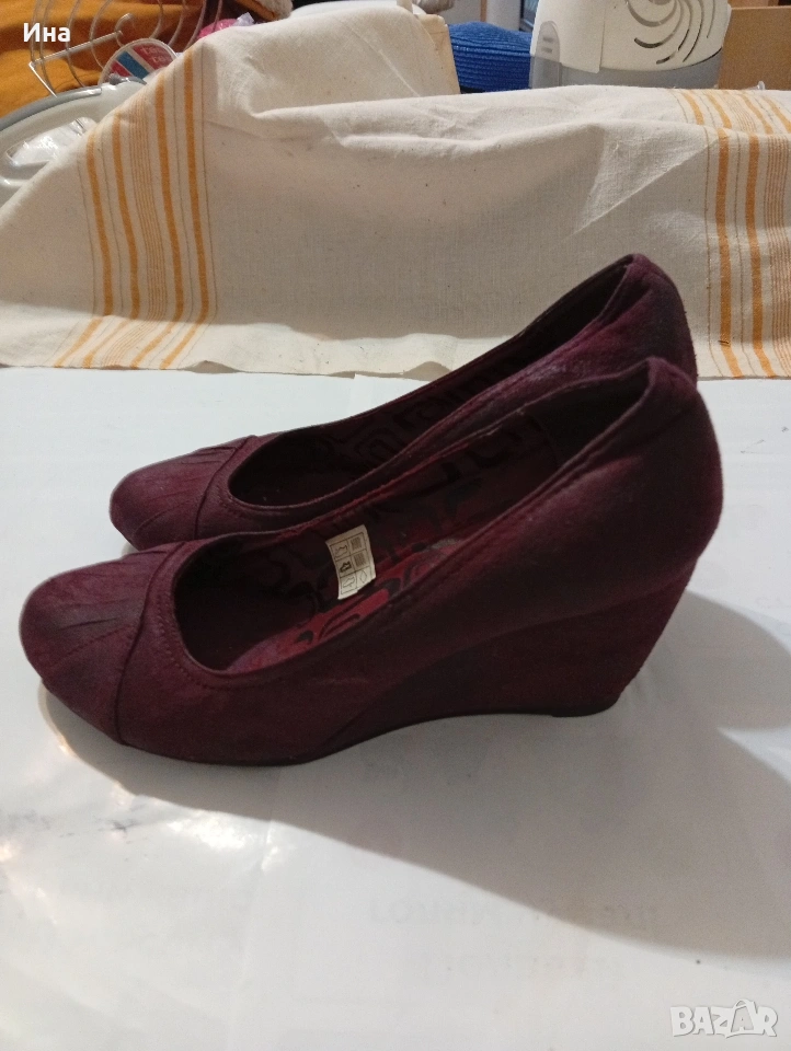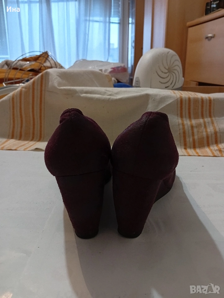 Елегантни обувки на марката Never 2 hot велур н.40, цвят бордо, стелка 26 см, височина отзад 8 см, много добро състояние