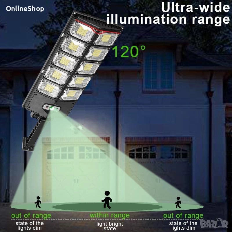 Соларната лампа е идеалното решение за външно осветление на дворове, улици, паркинги и градини. С вграден соларен панел и високоефективни SMD LED светодиоди, тя осигурява мощен и равномерен светлинен поток. Благодарение на интелигентния сензор за движение и автоматичната система за управление, лампата се активира само при необходимост, което удължава живота на батерията и пести енергия.