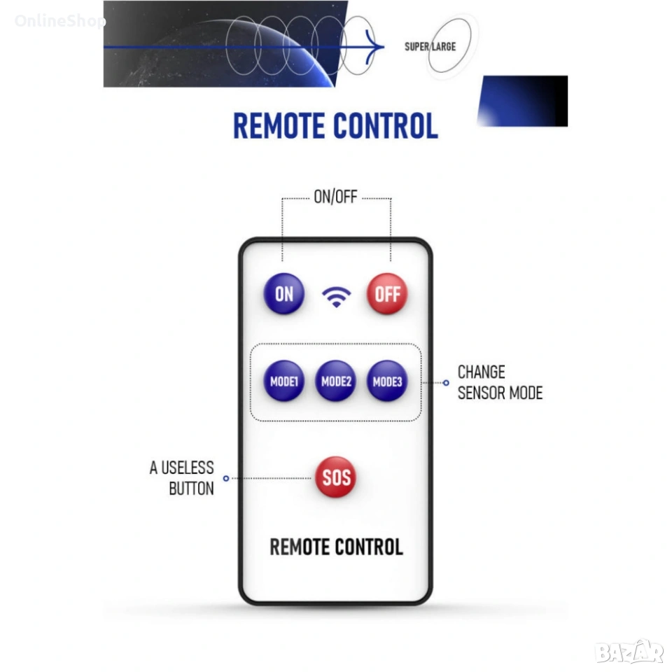 Лампата разполага с няколко режима на работа, включително автоматично осветяване при здрачаване, димирана светлина и засилено осветление при движение. Вградените акумулаторни батерии с голям капацитет осигуряват работа до 12 часа с едно зареждане. Дистанционното управление позволява лесно настройване на режимите според нуждите ви.