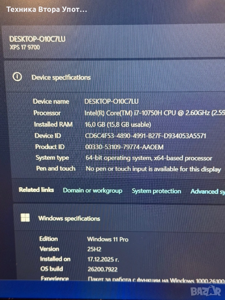 Продавам лаптоп Dell Ultrabook XPS 17 9700
