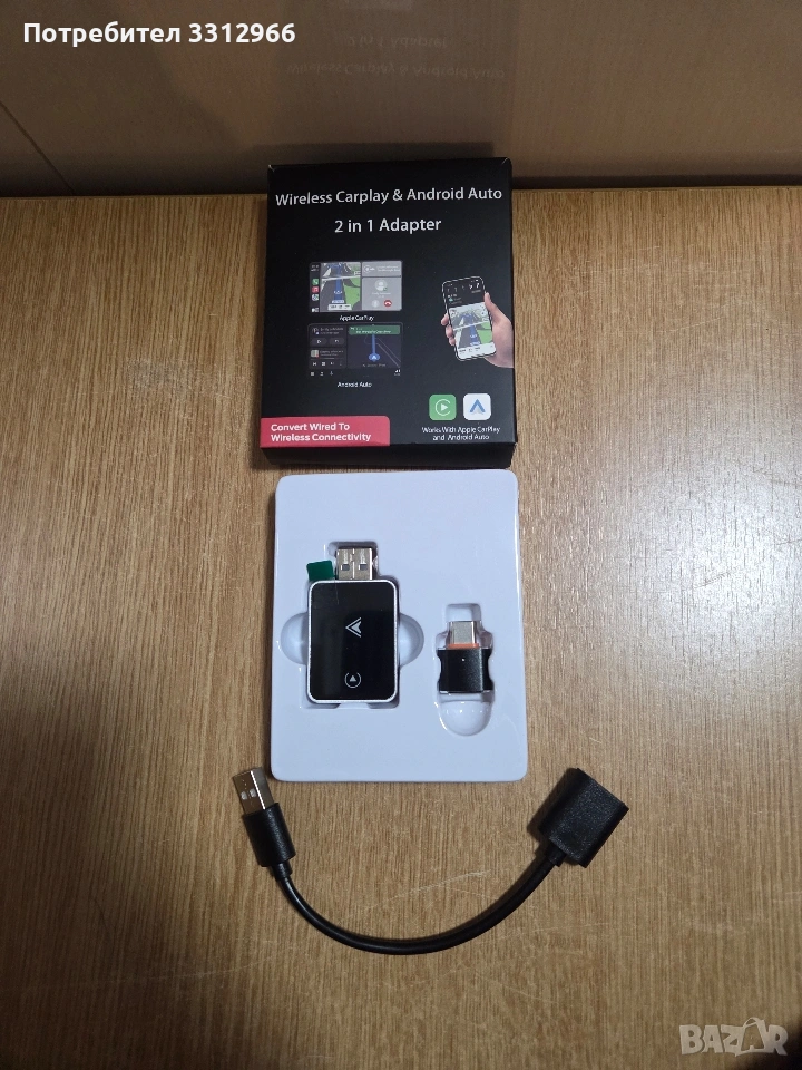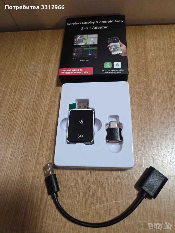 Безжичен адаптер за CarPlay и Android Auto 2-в-1 → Обява 53714278