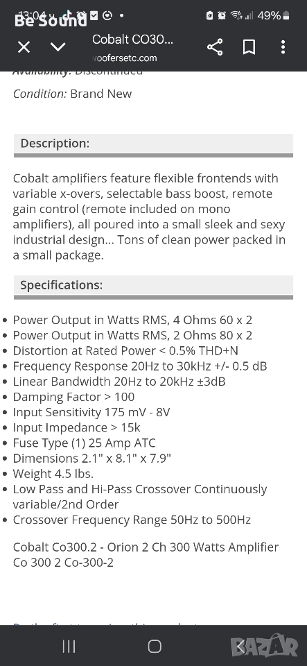 2 канален Усилвател Orion Cobalt CO300.2, снимка 1 - Ресийвъри, усилватели, смесителни пултове - 53714695 2 канален Усилвател Orion Cobalt CO300.2, снимка 2 - Ресийвъри, усилватели, смесителни пултове - 53714695 2 канален Усилвател Orion Cobalt CO300.2, снимка 3 - Ресийвъри, усилватели, смесителни пултове - 53714695 2 канален Усилвател Orion Cobalt CO300.2, снимка 4 - Ресийвъри, усилватели, смесителни пултове - 53714695 2 канален Усилвател Orion Cobalt CO300.2, снимка 5 - Ресийвъри, усилватели, смесителни пултове - 53714695 2 канален Усилвател Orion Cobalt CO300.2, снимка 6 - Ресийвъри, усилватели, смесителни пултове - 53714695 2 канален Усилвател Orion Cobalt CO300.2, снимка 7 - Ресийвъри, усилватели, смесителни пултове - 53714695 2 канален Усилвател Orion Cobalt CO300.2, снимка 8 - Ресийвъри, усилватели, смесителни пултове - 53714695 2 канален Усилвател Orion Cobalt CO300.2, снимка 9 - Ресийвъри, усилватели, смесителни пултове - 53714695 2 канален Усилвател Orion Cobalt CO300.2, снимка 10 - Ресийвъри, усилватели, смесителни пултове - 53714695 2 канален Усилвател Orion Cobalt CO300.2, снимка 11 - Ресийвъри, усилватели, смесителни пултове - 53714695 1/11