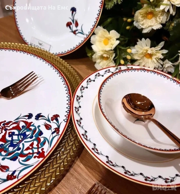 ✨Порцеланов Сервиз за Основно Хранене Karaca Nakkas 24части (за 6човека) 🌹✨ → Обява 53714704