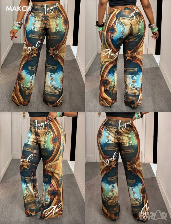 Макси модерен силно еластичен клин-панталон Чарлстон с висока ластична талия в атрактивен десен → Обява 53714969