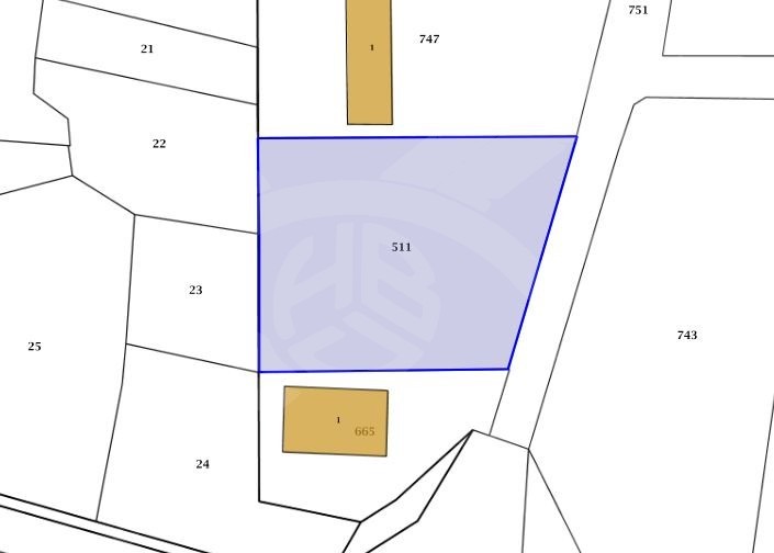 РАЗПРЕДЕЛЕНИЕ: Разполага с площ от 1225кв.м., в регулация и между къщи, с лице на път. За жилищно строителство!