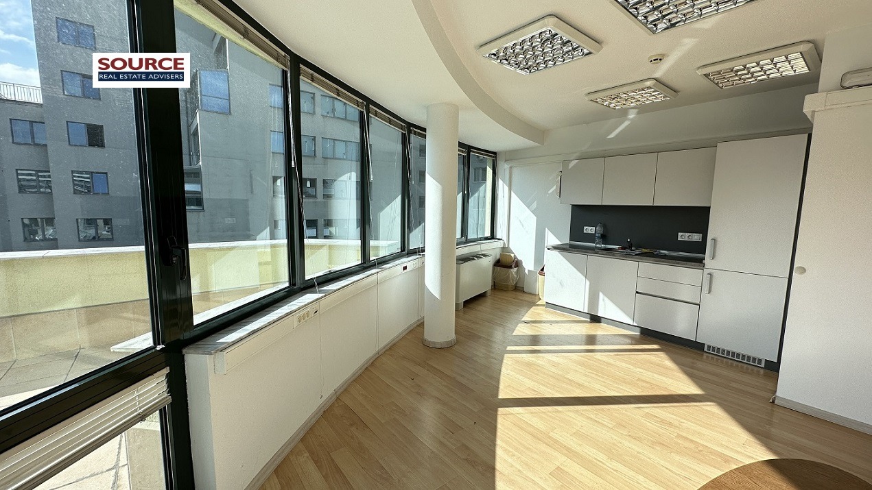 2. Разпределение: 3 големи Open space помещения, 24 отделни работни помещения, кухня със зала за почивка, сървърно помещение, 12 wc, 4 тераси. Офисът може да бъде допълнително преграден.