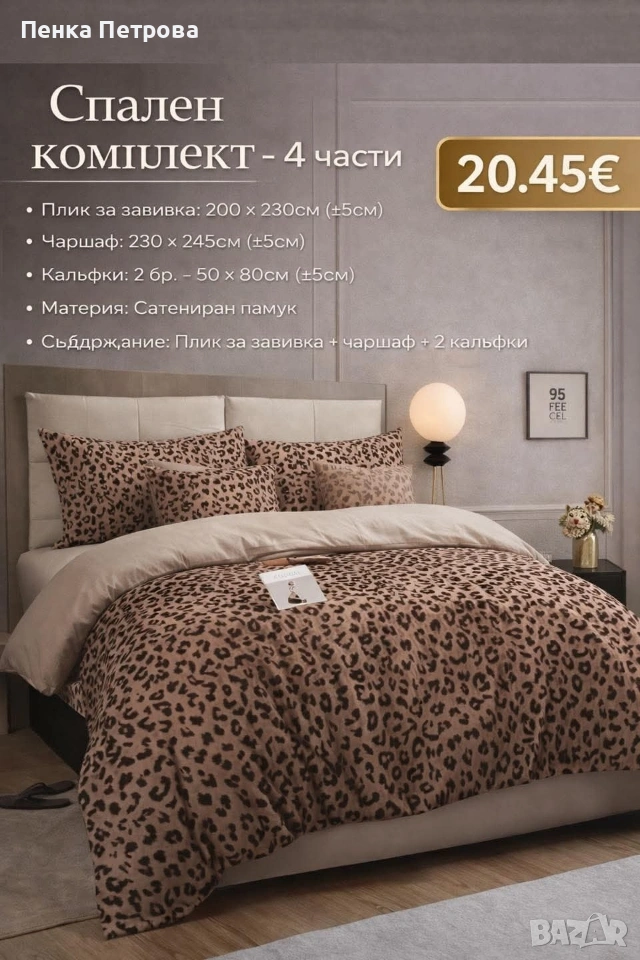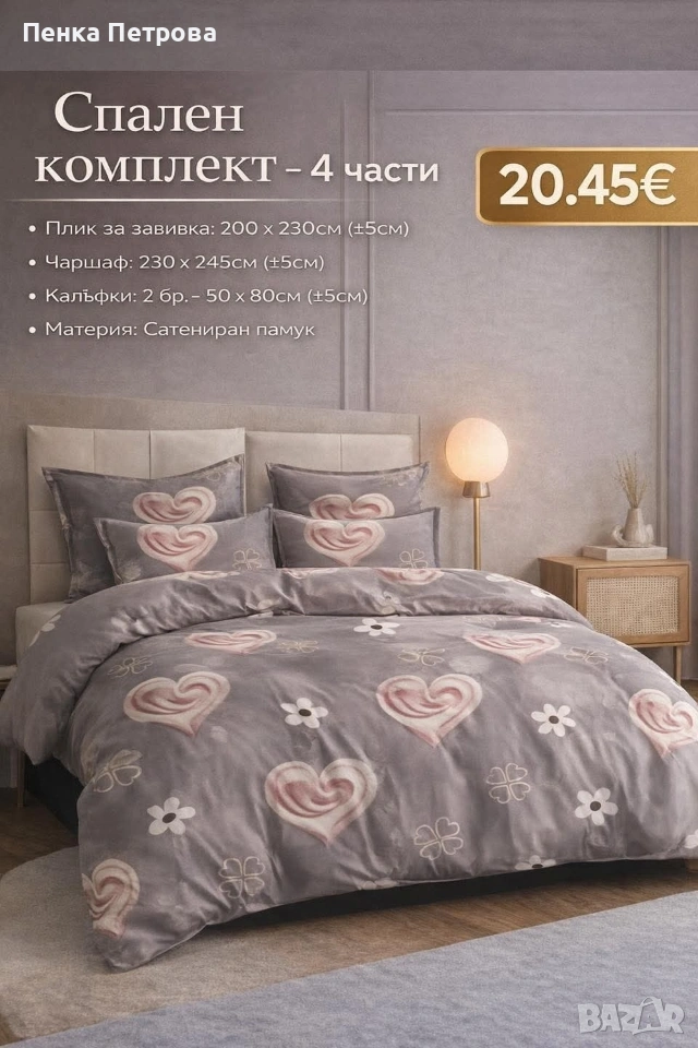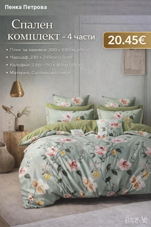 🌿 Материал: сатениран памук – мек, приятен на допир и удобен за сън