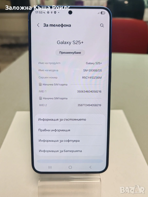 Samsung Galaxy S25+ в отлично състояние. Телефонът е като нов – без драскотини или забележки, работи перфектно.