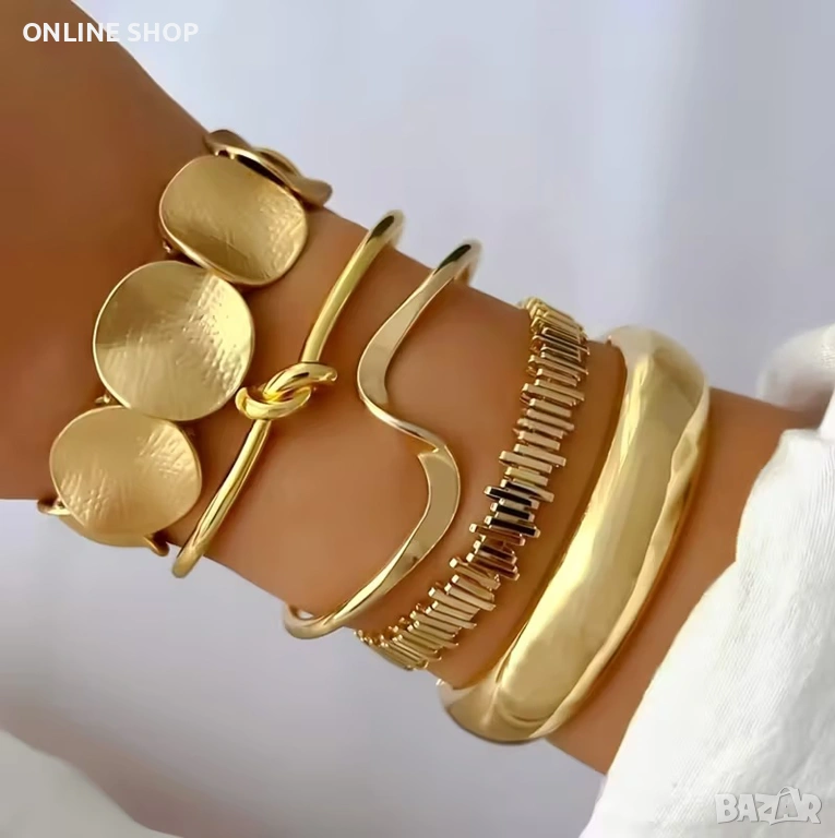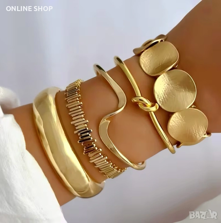 Добавете щипка индивидуалност към визията си с този изискан комплект от пет гривни! Съчетаващи в себе си ретро очарование и модерен хип-хоп акцент, тези аксесоари са създадени за жената, която обича да изразява себе си.