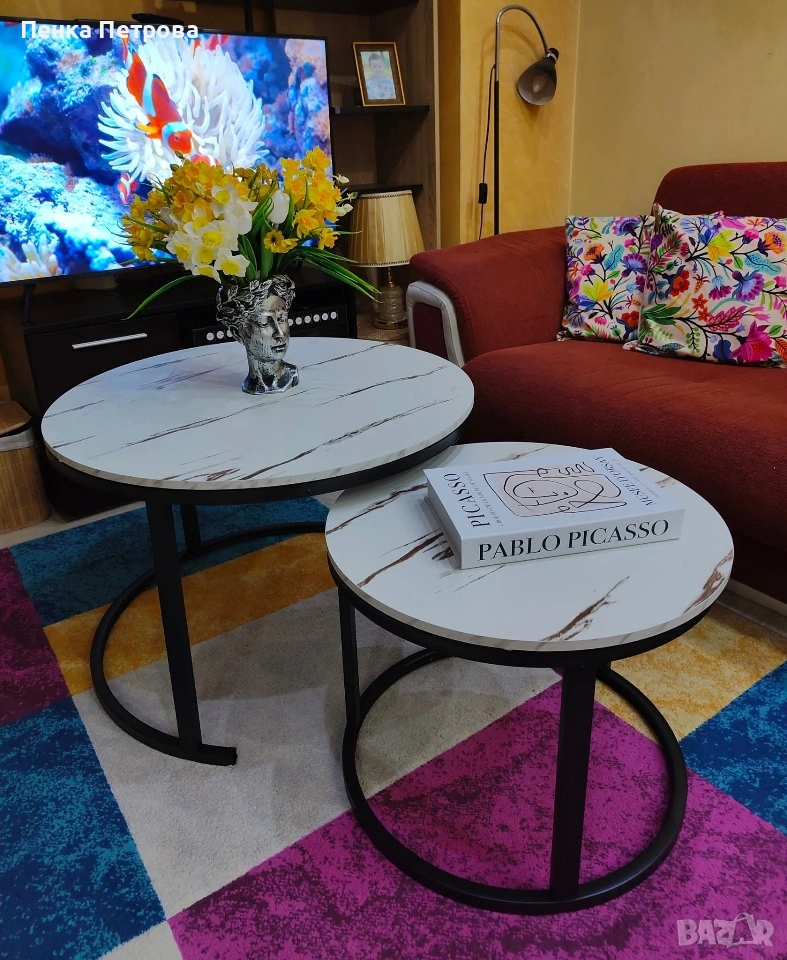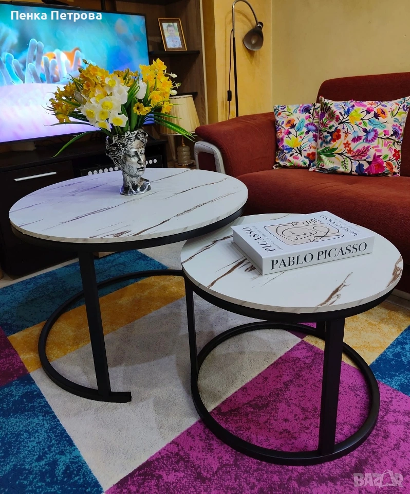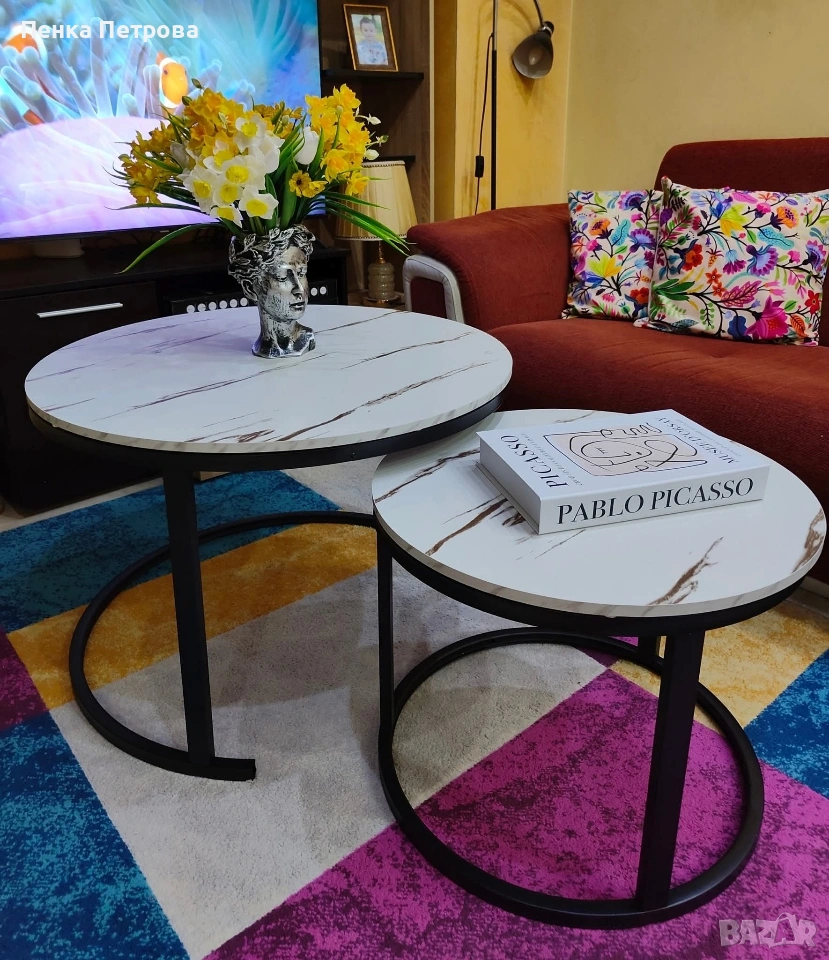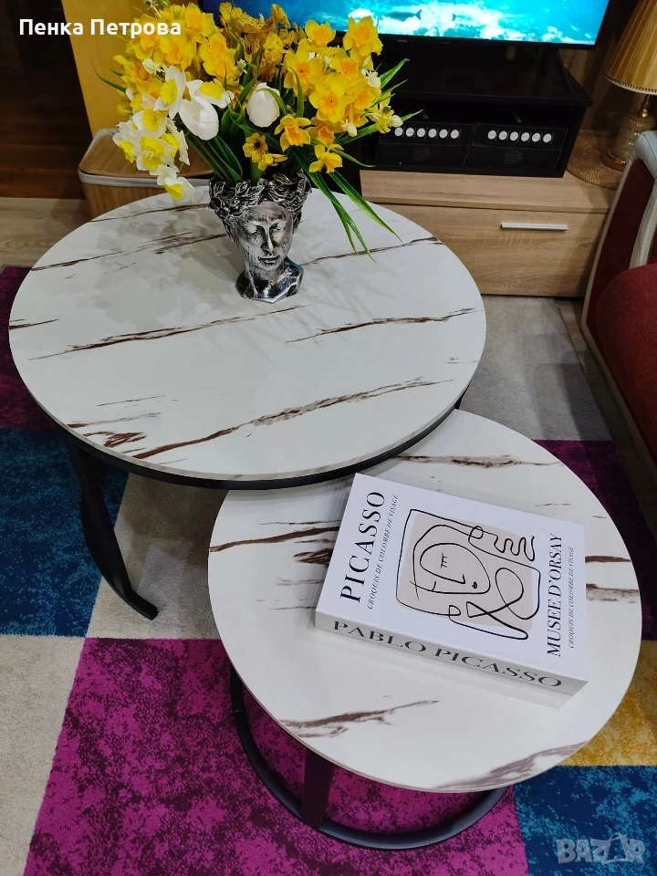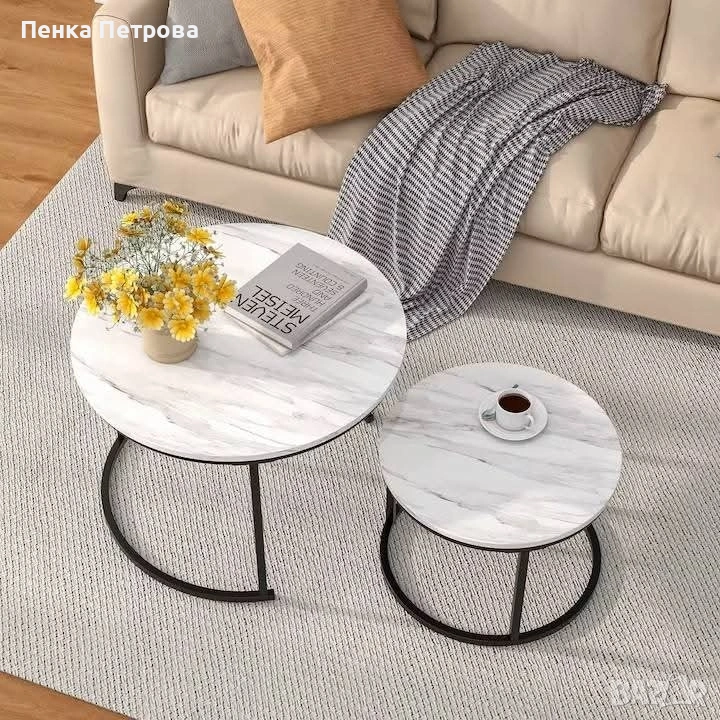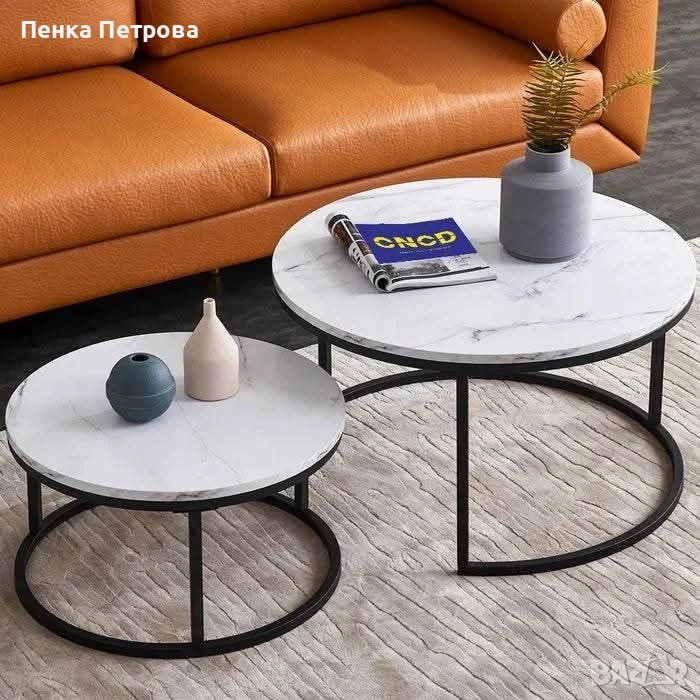 Комплект 2броя Холни маси Дион/ Dion Ефект бял мрамор