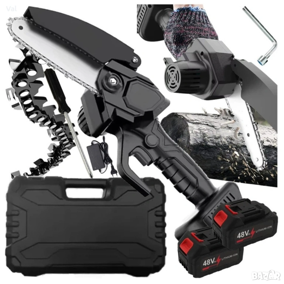 Акумулаторен мини верижен трион 6", Комплект с 2 батерии 6000mAh и куфар