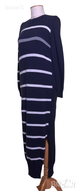 Синьо-сиво-бяла рокля на райета от кашмир и вълна