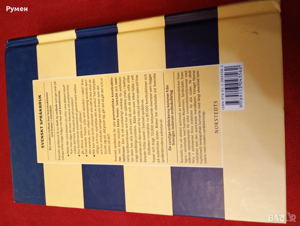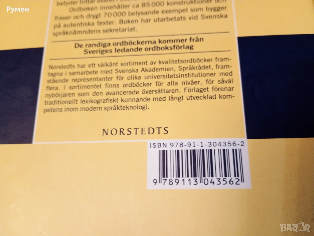 Характерната синьо-жълта раирана корица е запазена марка на серията академични речници на Norstedts.