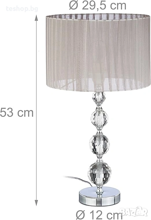 Нощна лампа Relaxdays абажур от воалирана тъкан и кристални стъклени топки