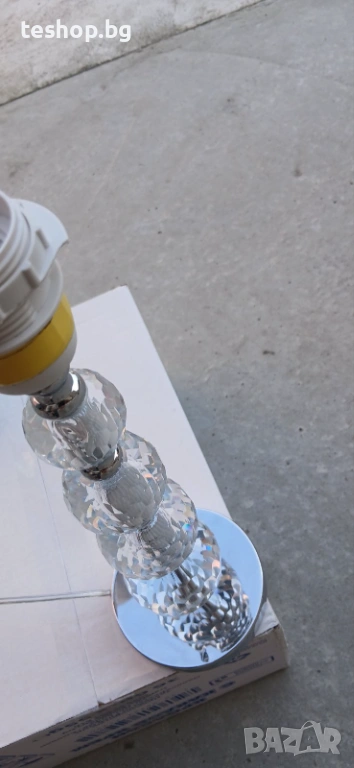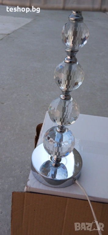 Ако търсите нощна лампа, която осигурява едновременно светлина, оригиналност и елегантност, тогава ние имаме точно това, от което се нуждаете! Тази лампа е с четири кристални стъклени сфери, които се стесняват към върха. Този луксозен детайл добавя значителна стойност към лампата. Простият и елегантен дизайн на абажура хармонизира перфектно с останалата част от лампата. Абажурът е цилиндричен, както и устойчивата на надраскване основа, която предпазва пода или други повърхности от петна.