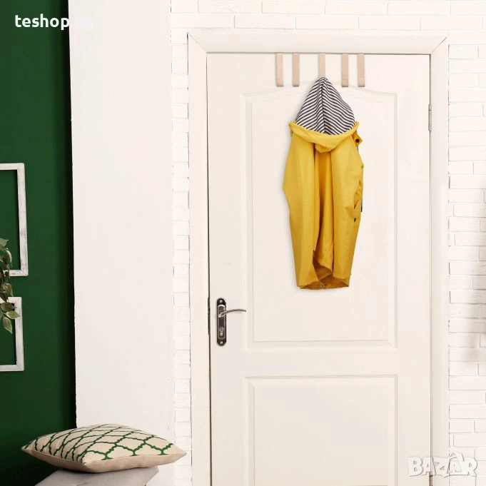 Комплект от 5 дървени закачалки за врати Relaxdays
