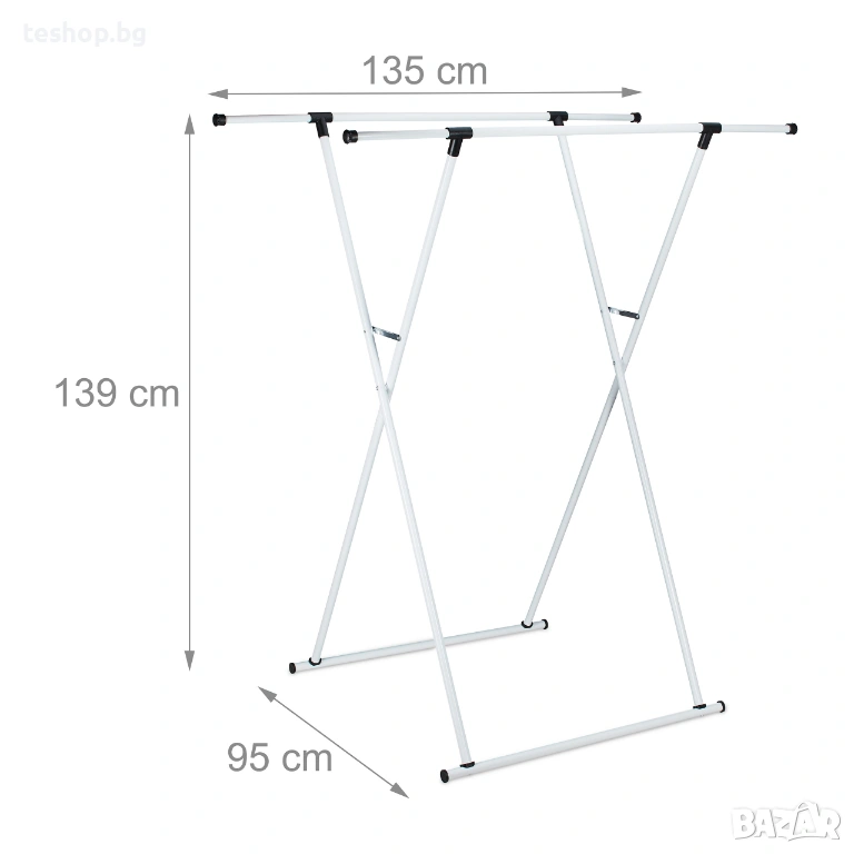 Релси за дрехи (неразгънати) Ш x Д: приблизително 82,5 x 2 см