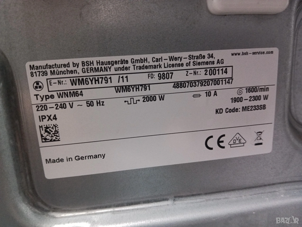 Пералнята е най високият клас на Сименс IQ800!