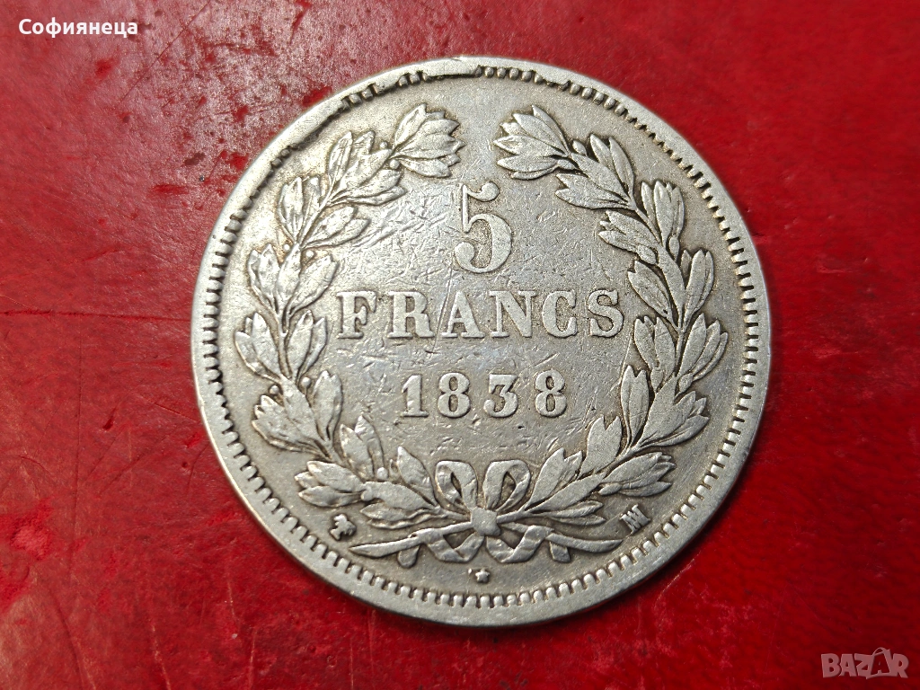Франция 5 франка 1838 сребърна монета → Обява 53716240