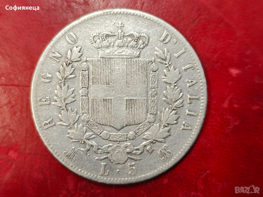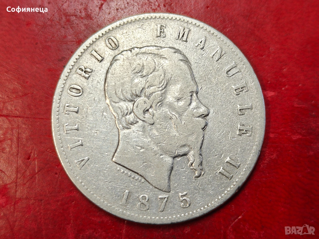 Италия 5 лири 1875 сребърна монета → Обява 53716251