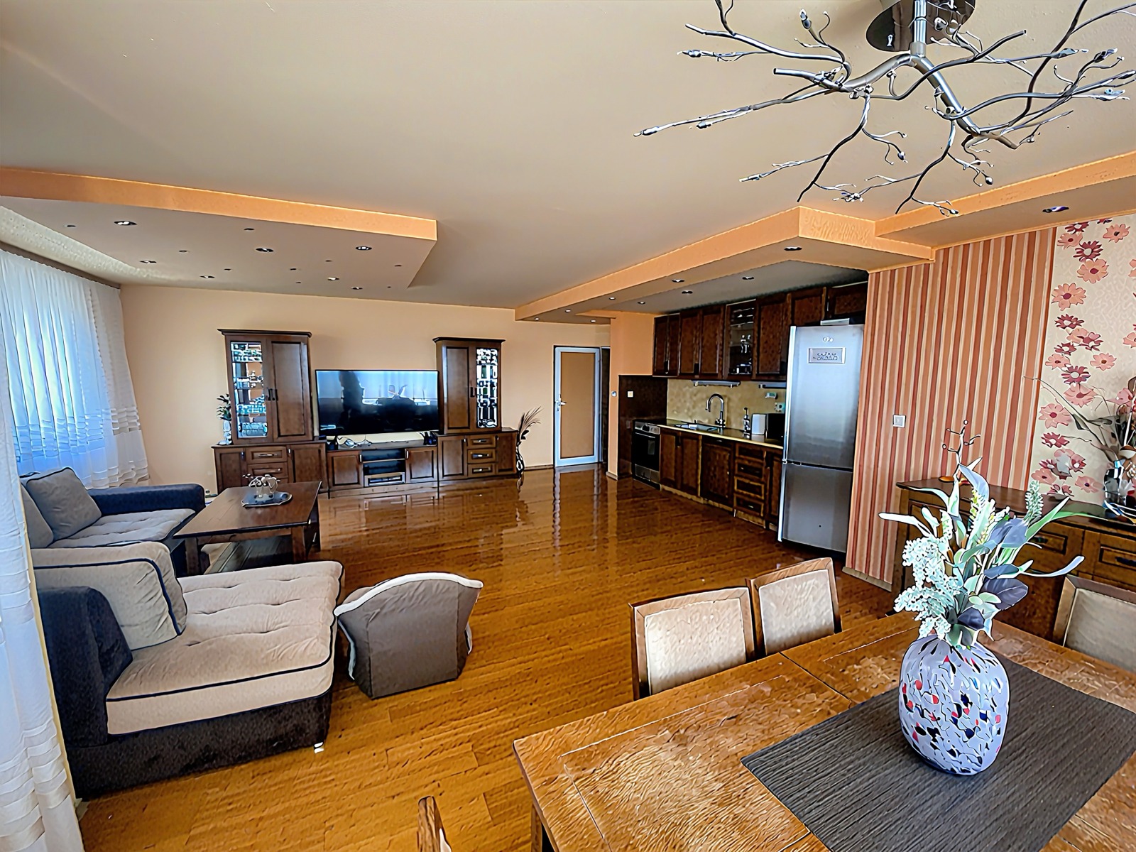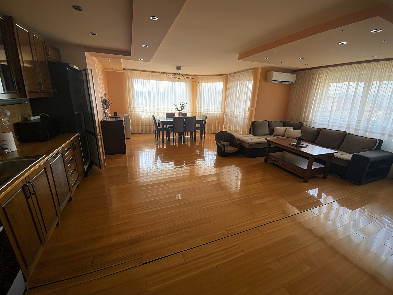 *просторно отворено пространство с кухненска част ,трапезария и зона за почивка.
