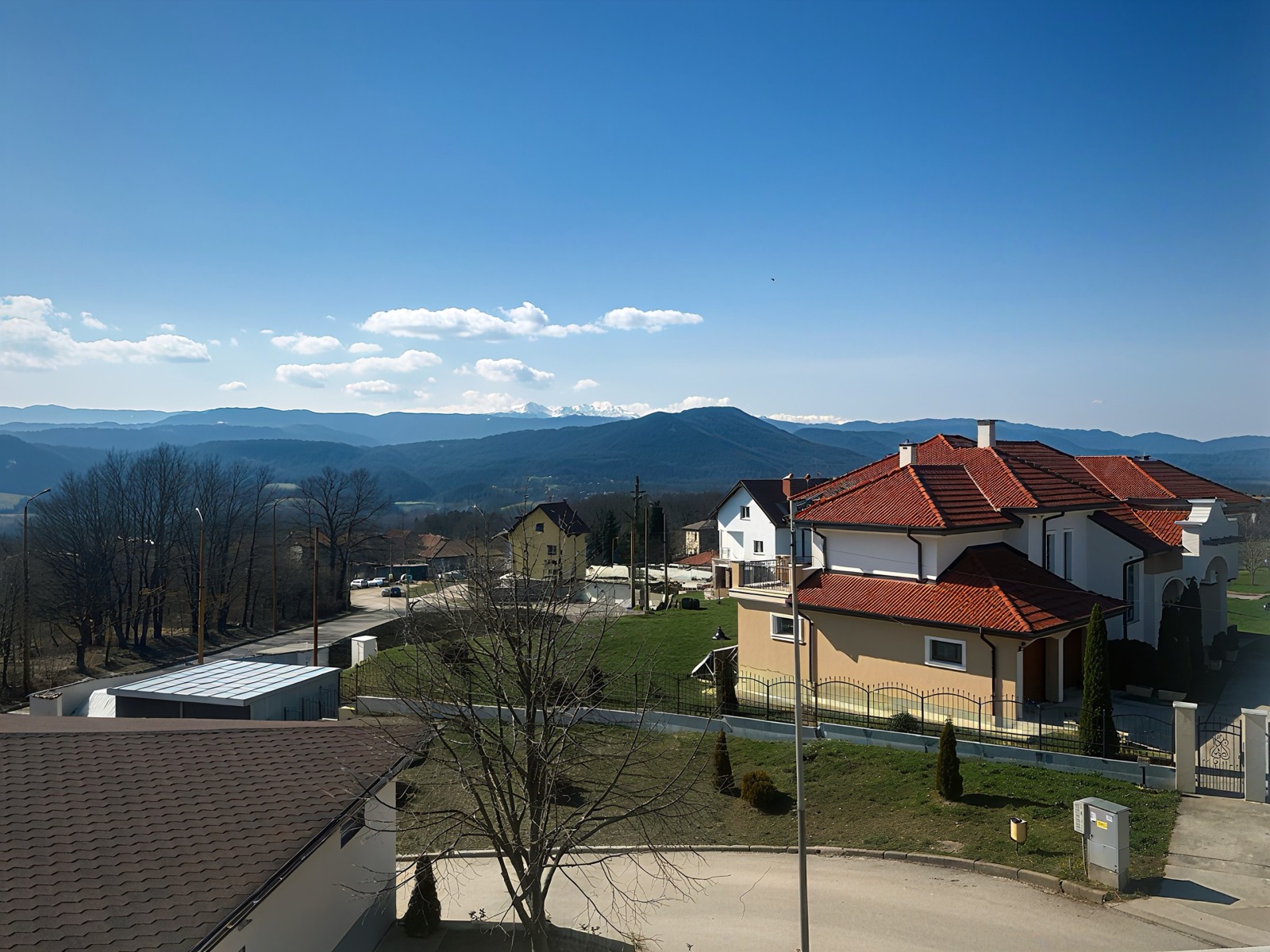 Широка и панорамна южна тераса открива гледка към Стара планина.Паркирането е свободно във вътрешен двор на сградата.