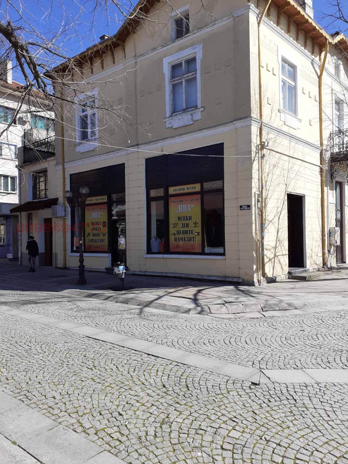 Продава двуетажна масивна еднофамилна къща с търговски помещения на 1ви, приземен етаж в центъра на гр. Елхово, област Ямбол на главна улица с пешеходна зона.