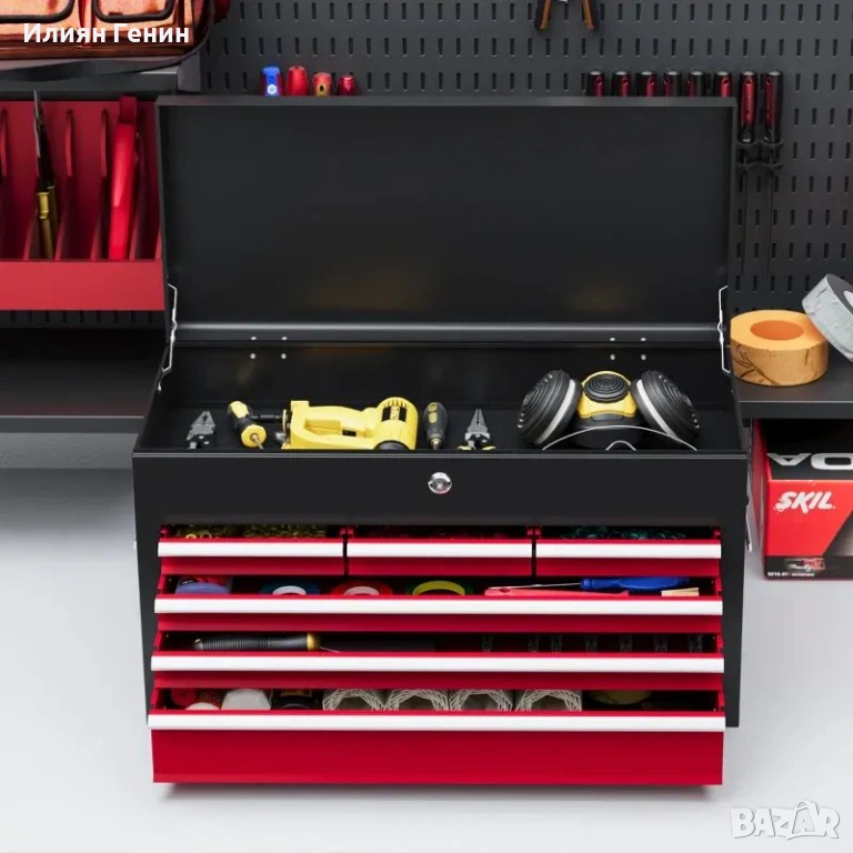 Здраво решение за съхранение: Тази кутия за инструменти разполага с шест издърпващи се чекмеджета и горно място за съхранение, което ви позволява да съхранявате спретнато и лесно различни инструменти. Плъзгащите се чекмеджета с лагери осигуряват плавно отваряне и затваряне.