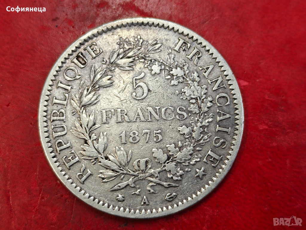 Франция 5 франка 1875 сребърна монета → Обява 53716680